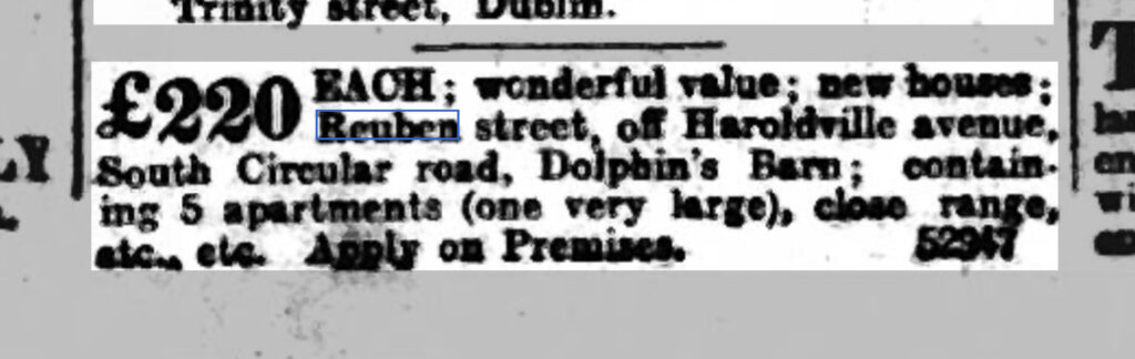 Running north from Cork Street, Dublin 8, Reuben Street was developed in the early 1900s.
